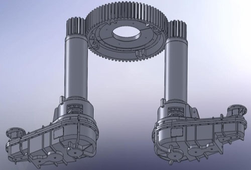 公司是我國較早生產(chǎn)煤氣發(fā)生爐等煤化工設(shè)備的企業(yè)。煤化工用齒輪箱主要有爐篦傳動裝置和BGL爐布煤器傳動裝置箱兩種。傳動裝置由減速機、輸出齒輪軸、偏心套組件及填料環(huán)組件等幾部分組成。