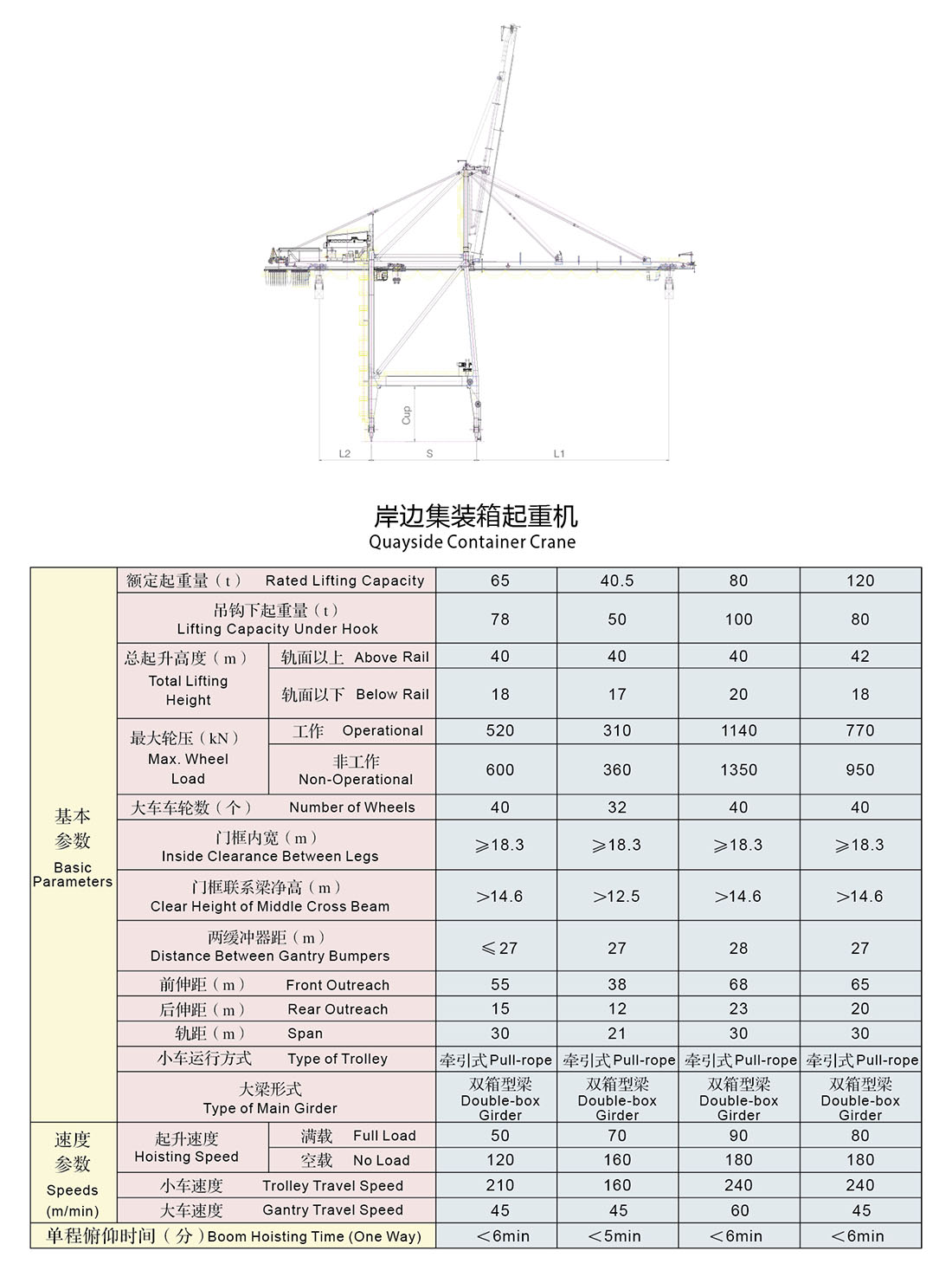岸邊集裝箱橋式起重機,是集裝箱碼頭前沿裝卸集裝箱的專用起重機,主要由起升機構(gòu)、小車行走機構(gòu)、大車行走機構(gòu)、仰俯機構(gòu)4個機構(gòu)組成。