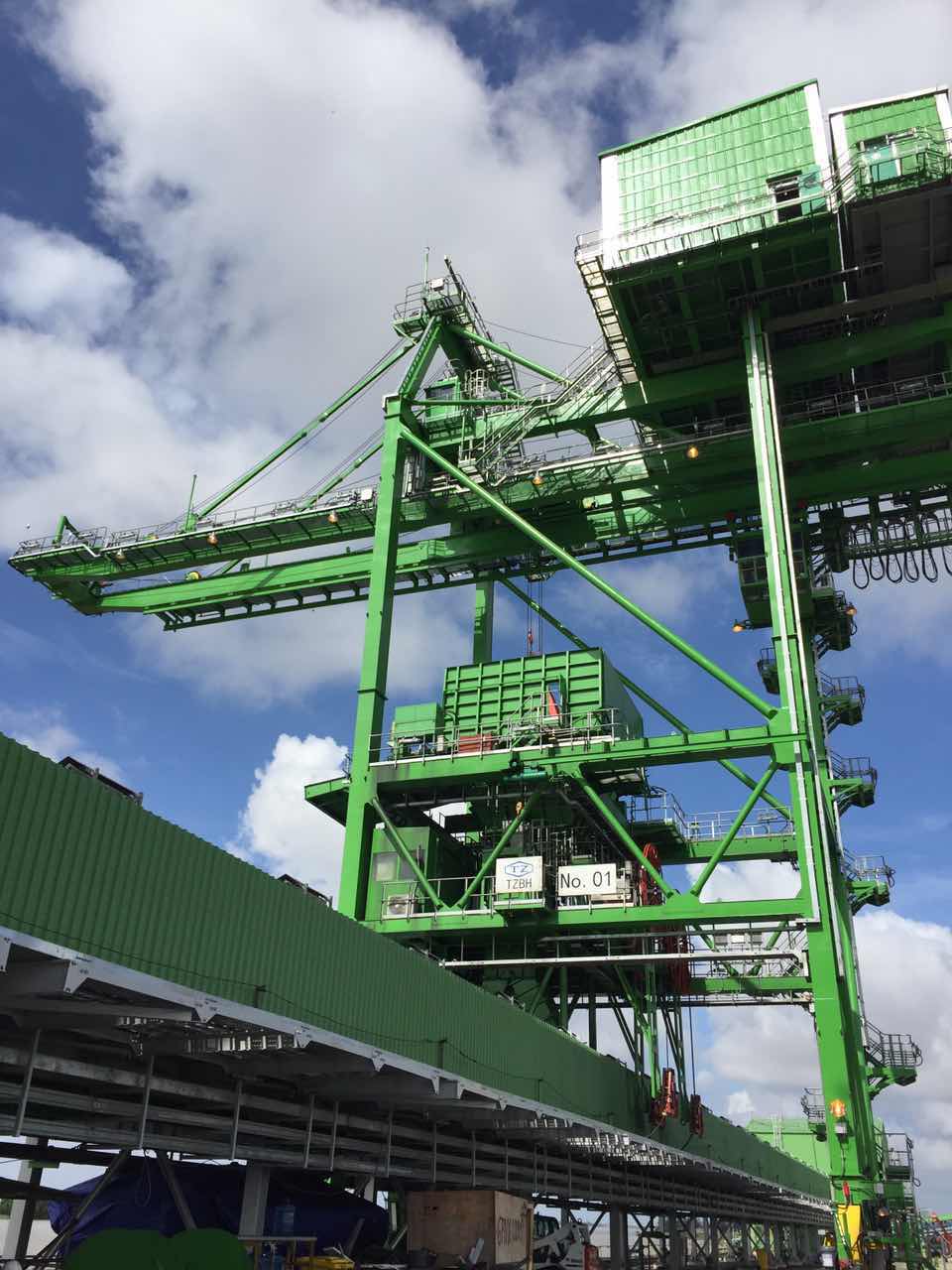 橋式抓斗卸船機(jī),是根據(jù)船型和各種貨種作業(yè)特點(diǎn)而設(shè)計(jì)的多動作專用機(jī)械,用于中、小港口的散貨卸船作業(yè)的起重機(jī)