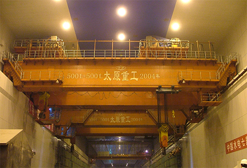 橋式起重機(jī)是橫架于車間、倉庫和料場上空,進(jìn)行物料吊運(yùn)的起重設(shè)備,使用范圍廣、應(yīng)用數(shù)量多。太重生產(chǎn)的橋式起重機(jī),標(biāo)志性產(chǎn)品有:水電站1300噸橋式起重機(jī)、水電站500t+500t雙小車橋式起重機(jī)等。