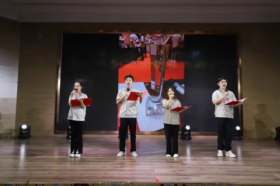 全場活動共分為矢志砥初心、激昂正青春、建功新時代三個篇章。晚會在VLOG《一起向未來》短視頻中拉開了帷幕,傳統(tǒng)藝術三句半《太重新人說太重》展現(xiàn)出新入職大學生以堅定的信念、過硬的本領、擔當?shù)挠職庾V寫太重贊歌的精氣神。“讓我們緊跟‘五年三步走’的戰(zhàn)略方向,以青春之名,放飛理想,為輝煌的太重獻熱爭光!”原創(chuàng)詩朗誦《以太重之名為太重爭光》表述著新入職大學生的激情與夢想,激勵著太重新青年用奮斗和奉獻圓夢,共同繪就太重美好的明天。