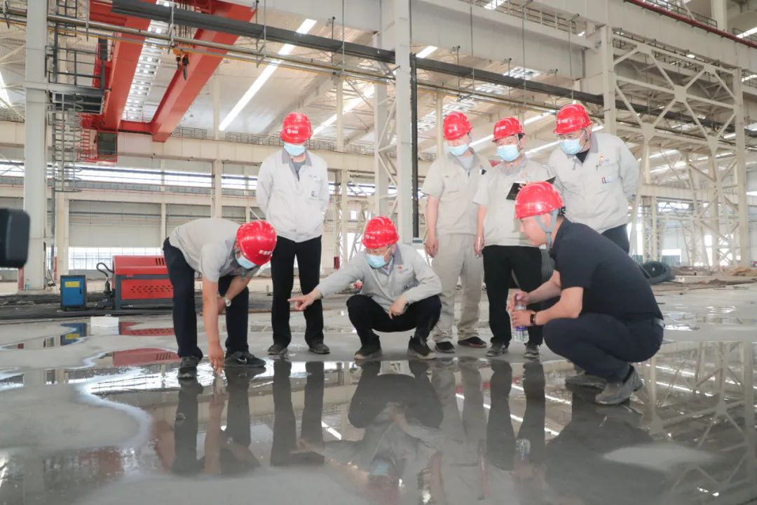 五月黃金季,施工忙正酣。廠房墻面上,“搶晴天、戰(zhàn)雨天,持之以恒保安全,精益求精保質(zhì)量,披星戴月保進(jìn)度”的條幅赫然醒目、催人奮進(jìn)。項(xiàng)目建設(shè)現(xiàn)場(chǎng)塔吊高聳、機(jī)聲隆隆,工人加緊施工,一派熱火朝天的忙碌景象。調(diào)研中,韓珍堂深入施工現(xiàn)場(chǎng),分別察看了下料中心、焊接中心、加工裝配、油膜、電氣木模等廠房建設(shè)進(jìn)度。他邊走邊了解,時(shí)不時(shí)停下腳步,仔細(xì)詢問(wèn)檢查。他指出,要加強(qiáng)組織,強(qiáng)化管理,統(tǒng)籌協(xié)調(diào)各方建設(shè)力量和資源,進(jìn)一步細(xì)化工程節(jié)點(diǎn),全速推進(jìn)工程建設(shè)。細(xì)節(jié)決定質(zhì)量,細(xì)節(jié)決定成敗。要堅(jiān)持高標(biāo)準(zhǔn)、嚴(yán)要求、重細(xì)節(jié),以精益求精的精神推進(jìn)工程建設(shè),用心用情用力打造無(wú)與倫比的精品工程、標(biāo)桿工程、示范工程。韓珍堂還對(duì)地面硬化、道路綠化、管道優(yōu)化等細(xì)節(jié)工作提出具體要求。