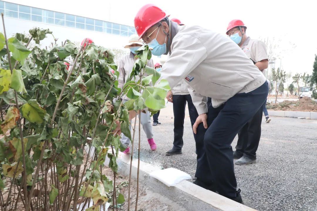 當(dāng)前,廠區(qū)綠化正按照先喬木后灌木再地被的順序超常組織,已有三條道路基本完成主要樹種種植。韓珍堂詳細(xì)了解栽種樹木種類布局,指出要合理規(guī)劃,注重細(xì)節(jié),不僅要打造品種豐富、四季多彩的園區(qū)景觀,也要注重園區(qū)圍墻外環(huán)境治理,營造優(yōu)美舒適的辦公環(huán)境。要全速推進(jìn)項(xiàng)目建設(shè),確保各個(gè)環(huán)節(jié)銜接有序,在做好道路清理工作的基礎(chǔ)上加快推進(jìn)綠化工程進(jìn)度,確保在最佳時(shí)節(jié)完成樹木種植工作。