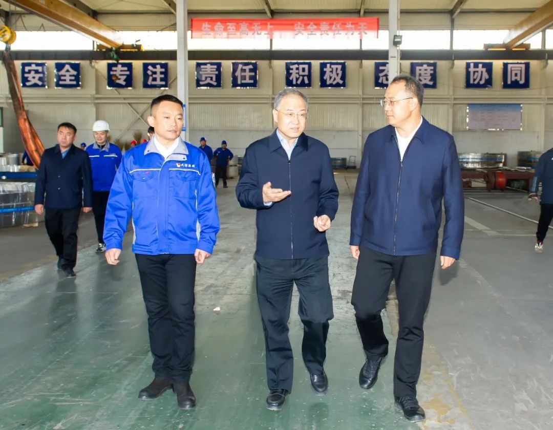 考察組一行先后到宏昊鍛業(yè)有限公司、恒躍集團、天寶集團進行考察,實地參觀了各企業(yè)生產(chǎn)車間,詳細了解風電裝備制造“鏈核”企業(yè)技術工藝、生產(chǎn)加工、設備使用等情況,并就下一步深化合作進行交流探討。