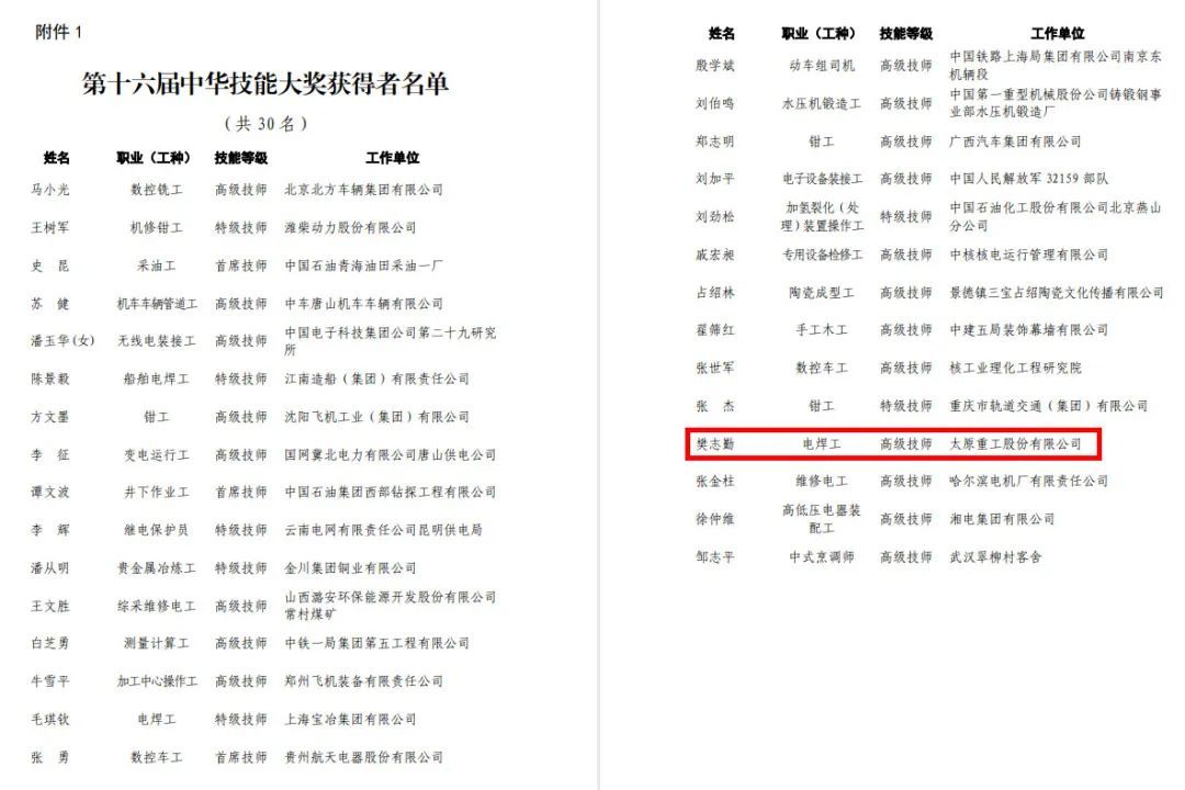 近日,第十六屆“中華技能大獎(jiǎng)”和“全國技術(shù)能手”名單出爐!全國僅30名中華技能大獎(jiǎng)獲得者,太重集團(tuán)高級(jí)技師樊志勤榜上有名,也是獲此殊榮的第一位太重人!衷心祝賀喜獲殊榮!