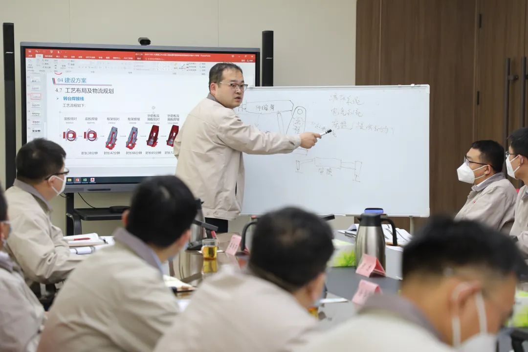 現(xiàn)場(chǎng)調(diào)研結(jié)束后,韓珍堂主持召開(kāi)工程機(jī)械項(xiàng)目建設(shè)推進(jìn)會(huì)。組織參會(huì)人員現(xiàn)場(chǎng)畫(huà)圖、現(xiàn)場(chǎng)分析、精準(zhǔn)拆解、明確分工、制定工期,把會(huì)議開(kāi)在實(shí)處,發(fā)現(xiàn)問(wèn)題當(dāng)下推動(dòng)、當(dāng)下解決。