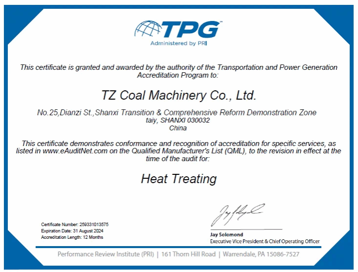 PRI評審協(xié)會對太重煤機的組織機構(gòu)及職責、質(zhì)量體系和熱處理生產(chǎn)流程控制、可追溯性文件記錄、設備儀器檢定的管理等方面進行了嚴格的現(xiàn)場審核,最終公司獲得了專家評審團的高度認可,順利取得了熱處理工序TPG認證證書!