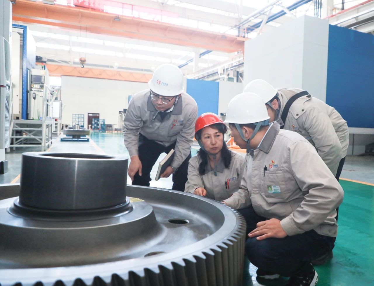 加強軟件硬件提升,讓質量更加卓越。怎樣讓每個環(huán)節(jié)都嚴起來、實起來?新能源公司圍繞提升產(chǎn)品質量“硬件”和“軟件”水平,做了大量卓有成效的工作。配有AGV托盤,做好產(chǎn)品轉運防護;FMS柔性生產(chǎn)制造系統(tǒng),提質增效、降低成本、縮短周期,強化質量保障“硬件”,提高生產(chǎn)效率和產(chǎn)品質量。不僅如此,公司還以先進標準提升產(chǎn)品質量,制定的《齒輪箱產(chǎn)品檢驗手冊》《不同機型風機產(chǎn)品檢驗手冊》等程序文件,對產(chǎn)品檢驗規(guī)范、技術標準和記錄文件全面梳理,使其具有更強的針對性、指導性和實用性?!巴ㄟ^‘軟硬件’雙提升,精益求精,狠抓生產(chǎn)過程控制,各工序協(xié)同發(fā)力,嚴格把控質量的每一道關口?!毙履茉垂举|量控制室主辦任文斌說。加強工藝技術創(chuàng)新,讓質量更加精益。“采用冷熱配合銜接的工藝思路,建成生產(chǎn)全流程過程控制體系,控制產(chǎn)品熱處理變形,我們的目標是向著零返修率沖刺?!饼X傳分公司技術工藝室主任王曰輝表示,“先進的工藝技術是實現(xiàn)產(chǎn)品高性能、高質量、高可靠的重要保證,我們通過全面梳理上一年質量問題,針對發(fā)生率較多的情況進行工藝攻關,加大先進技術在生產(chǎn)制造中的應用,帶動質量持續(xù)提升?!?/span>加強質量意識提升,讓質量更加入腦入心。40張“質量關口”看板,將質量控制貫穿于產(chǎn)品生產(chǎn)的全過程,確保產(chǎn)品質量達到規(guī)定標準;舉辦“涂刷質量我來評”活動,使職工更加深入地了解涂刷質量的影響因素和解決方法,提高自身技能水平;組織“質量關口知識競賽”,將質量理念內(nèi)化于心、外化于行,融入日常工作中……形式多樣的質量活動,提升職工質量意識,普及質量管理及質量檢測知識,傳播質量文化,推動科學質量管理方法交流互鑒?!懊咳瞻嗲皶覀兌紩η耙惶斓膶嶋H情況進行反饋和經(jīng)驗分享,總結優(yōu)秀經(jīng)驗和技術亮點,反思不足并做好改進提升方案?!饼X傳分公司熱處理工部班組長孟四本說。