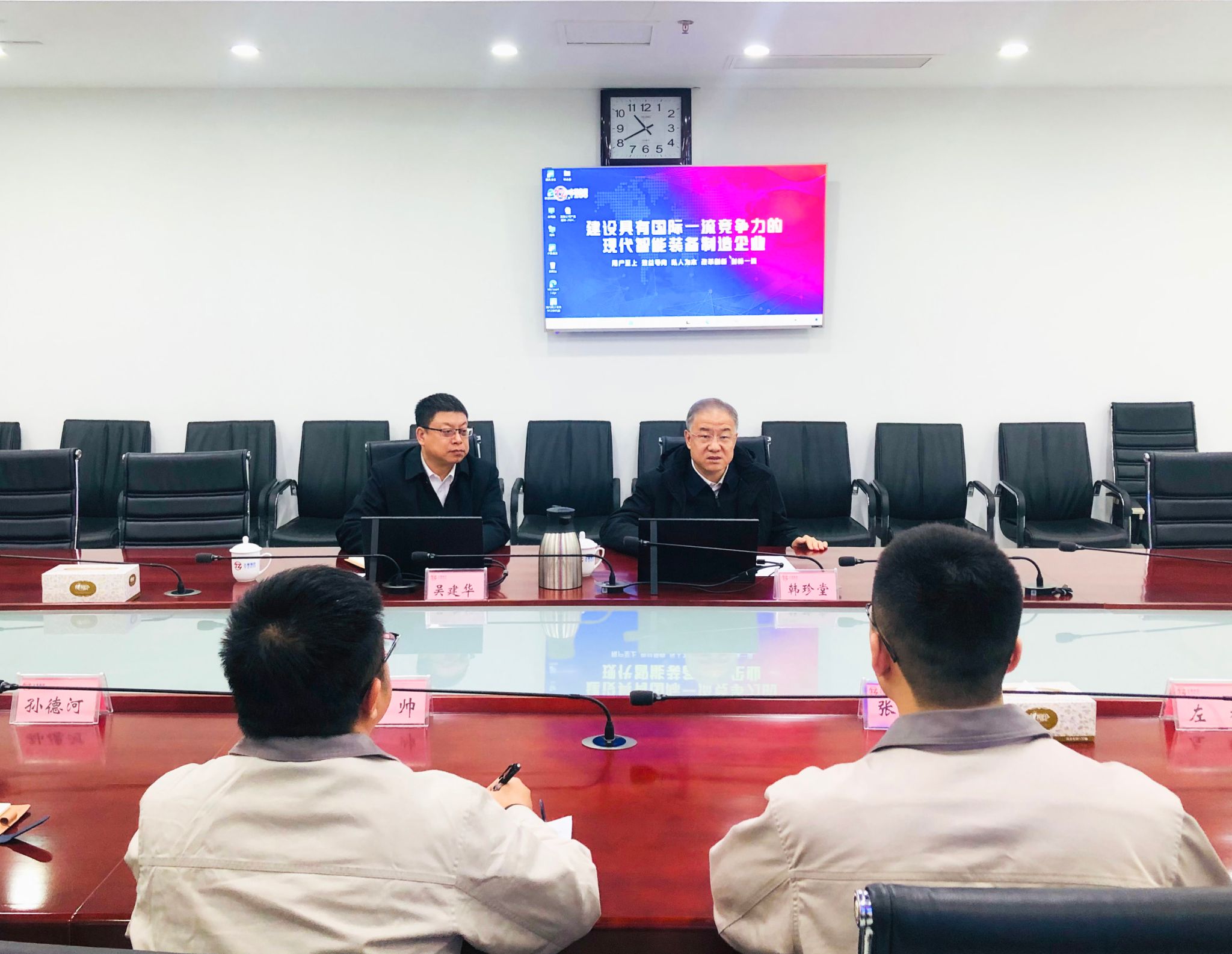 “四不兩直”的調(diào)研就是要達(dá)到“求深、求實(shí)、求細(xì)、求準(zhǔn)、求效”的目的。調(diào)研過(guò)程中堅(jiān)持“問(wèn)題導(dǎo)向”,最終目的就是要解決問(wèn)題。如何進(jìn)一步統(tǒng)一思想、提高認(rèn)識(shí)、加強(qiáng)管理,韓珍堂再次以現(xiàn)場(chǎng)提問(wèn)的方式為濱海公司把脈問(wèn)診、指明方向。產(chǎn)品創(chuàng)新取得哪些突破?港機(jī)設(shè)備如何做大做強(qiáng)?鍛壓設(shè)備和集團(tuán)本部如何協(xié)同配合?如何體現(xiàn)成本優(yōu)勢(shì)?營(yíng)銷(xiāo)怎么拿訂單?這五個(gè)問(wèn)題至關(guān)重要,同時(shí)要落實(shí)好上次在礦山分公司調(diào)研時(shí)提出的“五個(gè)在哪里”。五問(wèn)思考法,每個(gè)問(wèn)題直指關(guān)鍵,每個(gè)意見(jiàn)直接明了,在四個(gè)小時(shí)的會(huì)議中,現(xiàn)場(chǎng)有問(wèn)有答、有問(wèn)必答、有答必果,成為濱海公司破解矛盾、撬動(dòng)發(fā)展、推動(dòng)目標(biāo)落實(shí)落地的良方。韓珍堂強(qiáng)調(diào),“三精三致三效”是公司推動(dòng)高質(zhì)量高速度發(fā)展堅(jiān)持的理念。聚焦當(dāng)前制約濱海公司發(fā)展的瓶頸問(wèn)題,找準(zhǔn)生產(chǎn)經(jīng)營(yíng)的切入點(diǎn)與著力點(diǎn),細(xì)化實(shí)化具體化各項(xiàng)措施辦法,才能達(dá)到事半功倍的效果,切實(shí)提升發(fā)展質(zhì)量、增加發(fā)展動(dòng)力。要統(tǒng)一思想、統(tǒng)一行動(dòng)、振奮精神、真抓實(shí)干,快速完成產(chǎn)品規(guī)劃執(zhí)行方案。相關(guān)負(fù)責(zé)人要進(jìn)一步解放思想、創(chuàng)新模式、靈活把控,加強(qiáng)可行性研究論證,做好項(xiàng)目前期規(guī)劃和測(cè)算工作,求真務(wù)實(shí)、擔(dān)當(dāng)實(shí)干,做到對(duì)全局和細(xì)節(jié)心中有數(shù);要打造高效協(xié)同的項(xiàng)目團(tuán)隊(duì),技術(shù)、營(yíng)銷(xiāo)、生產(chǎn)等相關(guān)部門(mén)齊心協(xié)力、共同發(fā)力,推動(dòng)公司高質(zhì)量跨越式發(fā)展;要出新招、出實(shí)招、出硬招,做好引才、育才、留才工作,加快突破“卡脖子”難題;要堅(jiān)持對(duì)標(biāo)先進(jìn),強(qiáng)化精益管理,擴(kuò)大市場(chǎng)規(guī)模,抓好產(chǎn)品結(jié)構(gòu)調(diào)整,在現(xiàn)有市場(chǎng)、現(xiàn)有用戶(hù)、現(xiàn)有產(chǎn)品的基礎(chǔ)上,進(jìn)一步開(kāi)拓新市場(chǎng)、尋求新賽道,奮力開(kāi)創(chuàng)天津?yàn)I海產(chǎn)業(yè)園區(qū)轉(zhuǎn)型發(fā)展新局面。集團(tuán)公司副總經(jīng)理吳建華陪同調(diào)研。