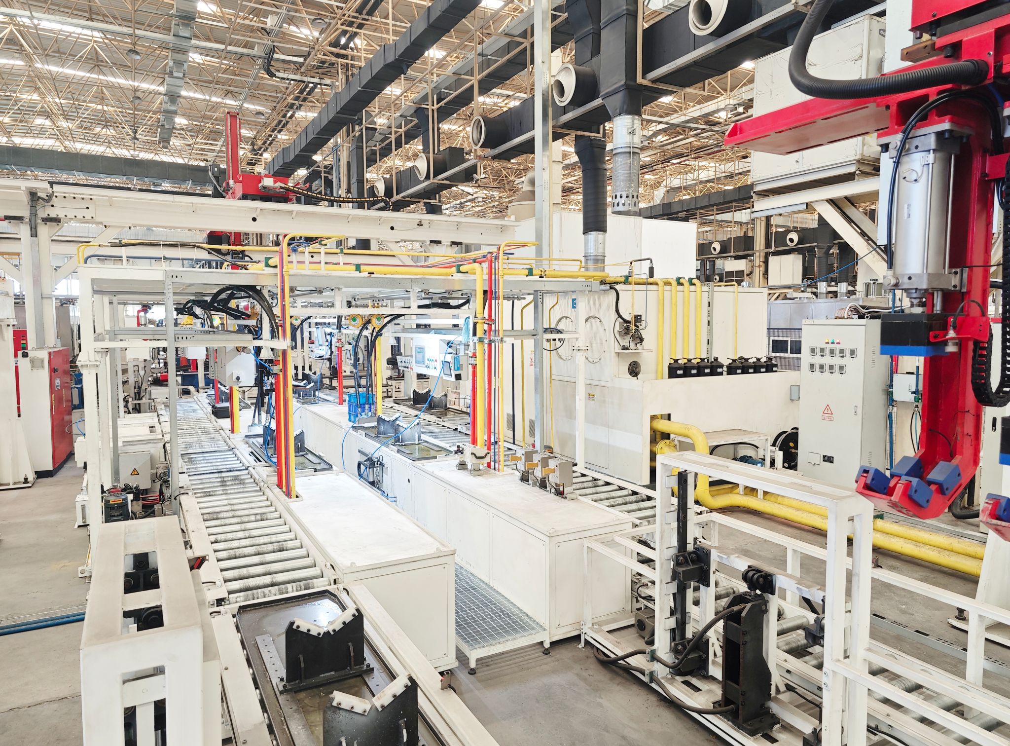 這批試驗臺生產(chǎn)線,是專為國內(nèi)某知名工程機械主機廠量身定制的,不僅體現(xiàn)了太重榆液在技術(shù)研發(fā)和制造工藝上的卓越實力,更是對用戶需求的深度解讀和精準回應。每條生產(chǎn)線都具備多工位功能,通過先進的控制系統(tǒng)與用戶的搬運機械手、中控系統(tǒng)無縫對接,實現(xiàn)了從自動吊裝、上料、運送到全自動試驗和自動下料的完整流程,真正做到了生產(chǎn)試驗的全自動一體化。