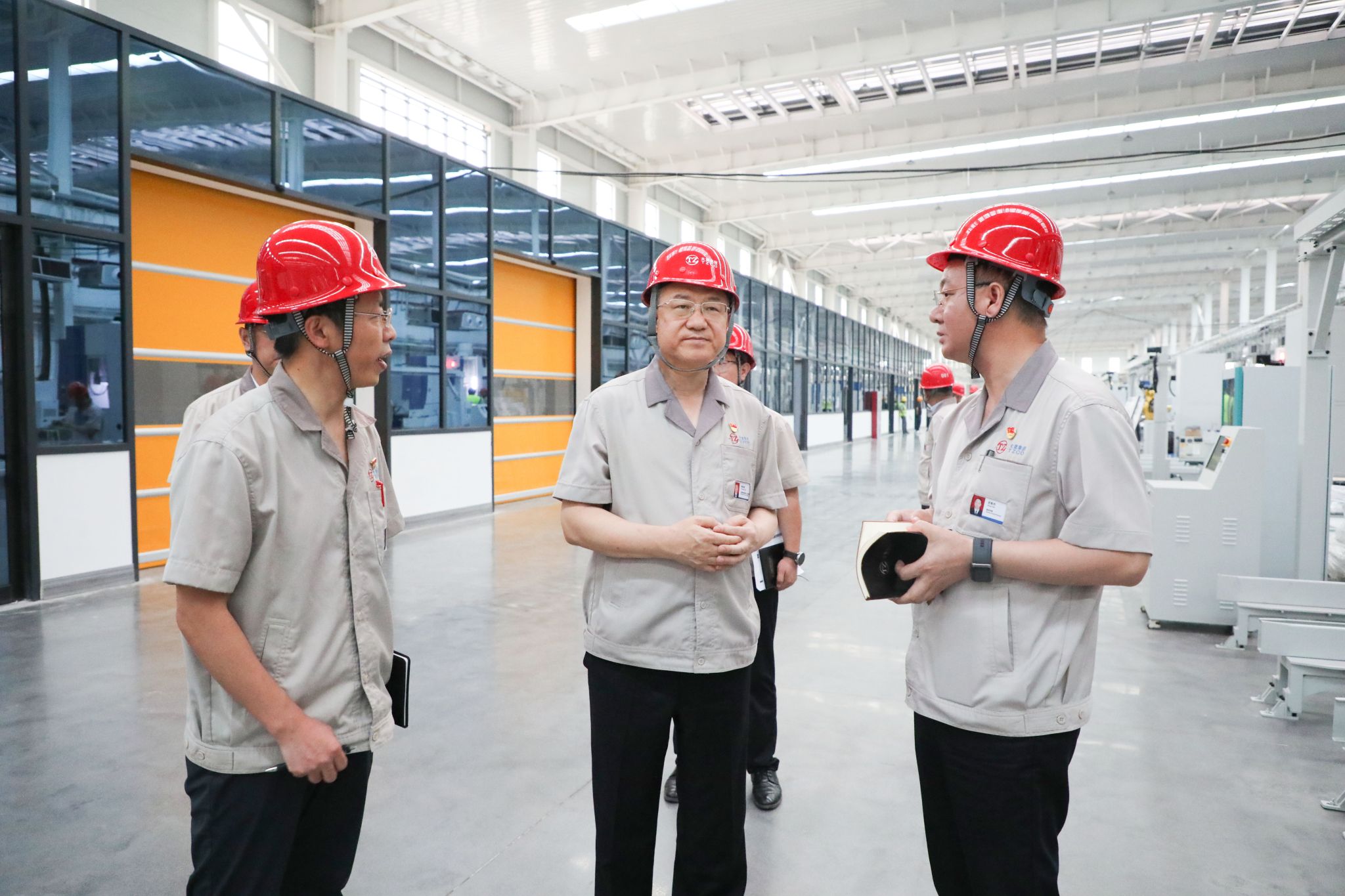 走進車間,寬敞明亮的廠房、平整光滑的地面,一臺臺先進設備整齊排列,現(xiàn)代化企業(yè)的氣息撲面而來。韓珍堂邊走邊看,詳細了解項目進度。目前,項目的工程建設已高質(zhì)量完成,正在進行收尾工作;設備已到貨157臺套且全部安裝完成,工人師傅們正在配合設備廠商進行調(diào)試,為盡快實現(xiàn)年內(nèi)投產(chǎn)的任務目標全力以赴。