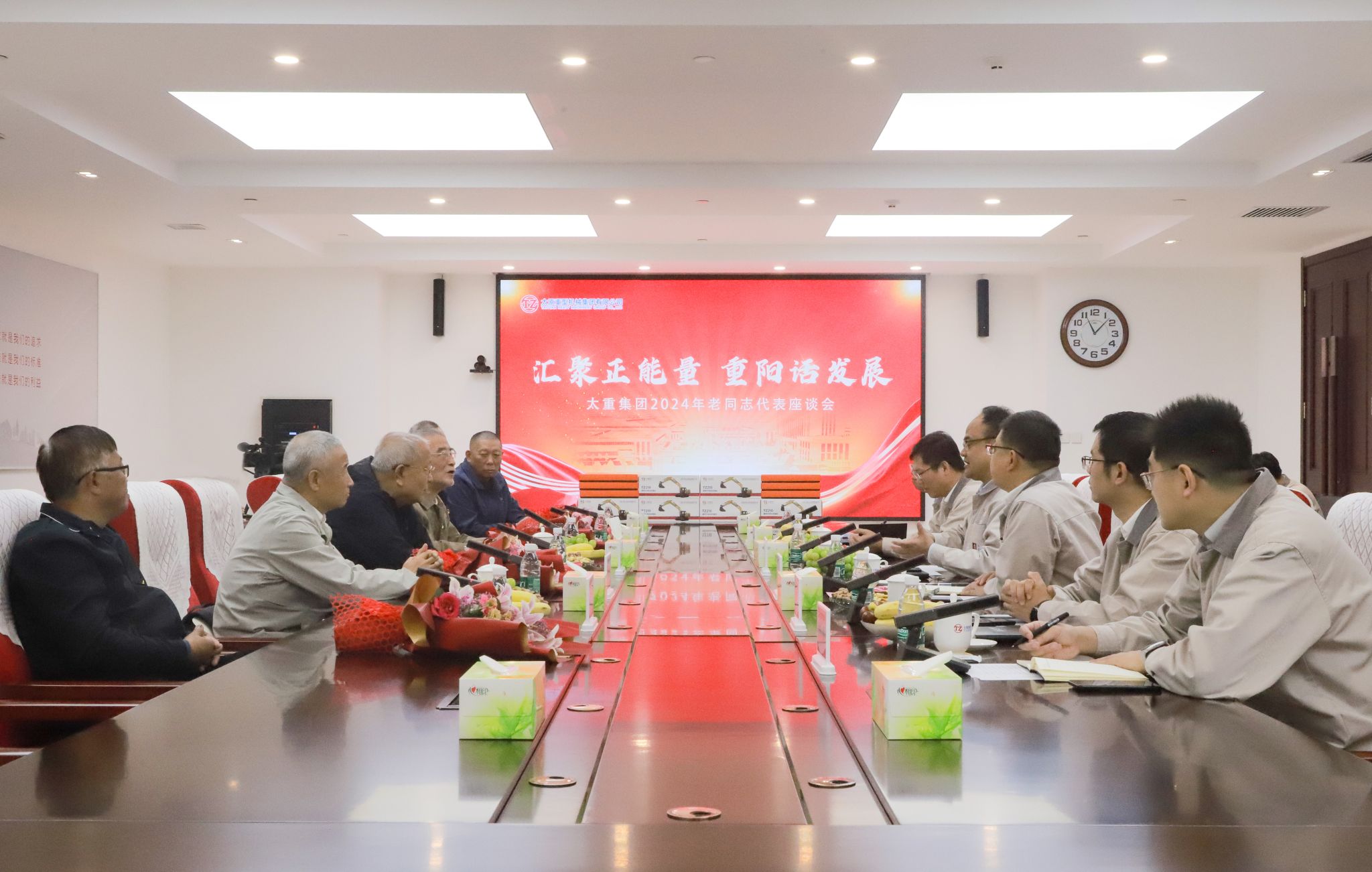 上午十時,老同志們來到集團總部,公司職工代表為他們送上鮮花。參加此次座談會的“老太重們”,盡管年齡最長的已逾九旬,但那份對太重的熱愛與忠誠,卻如青春般熾熱未減。