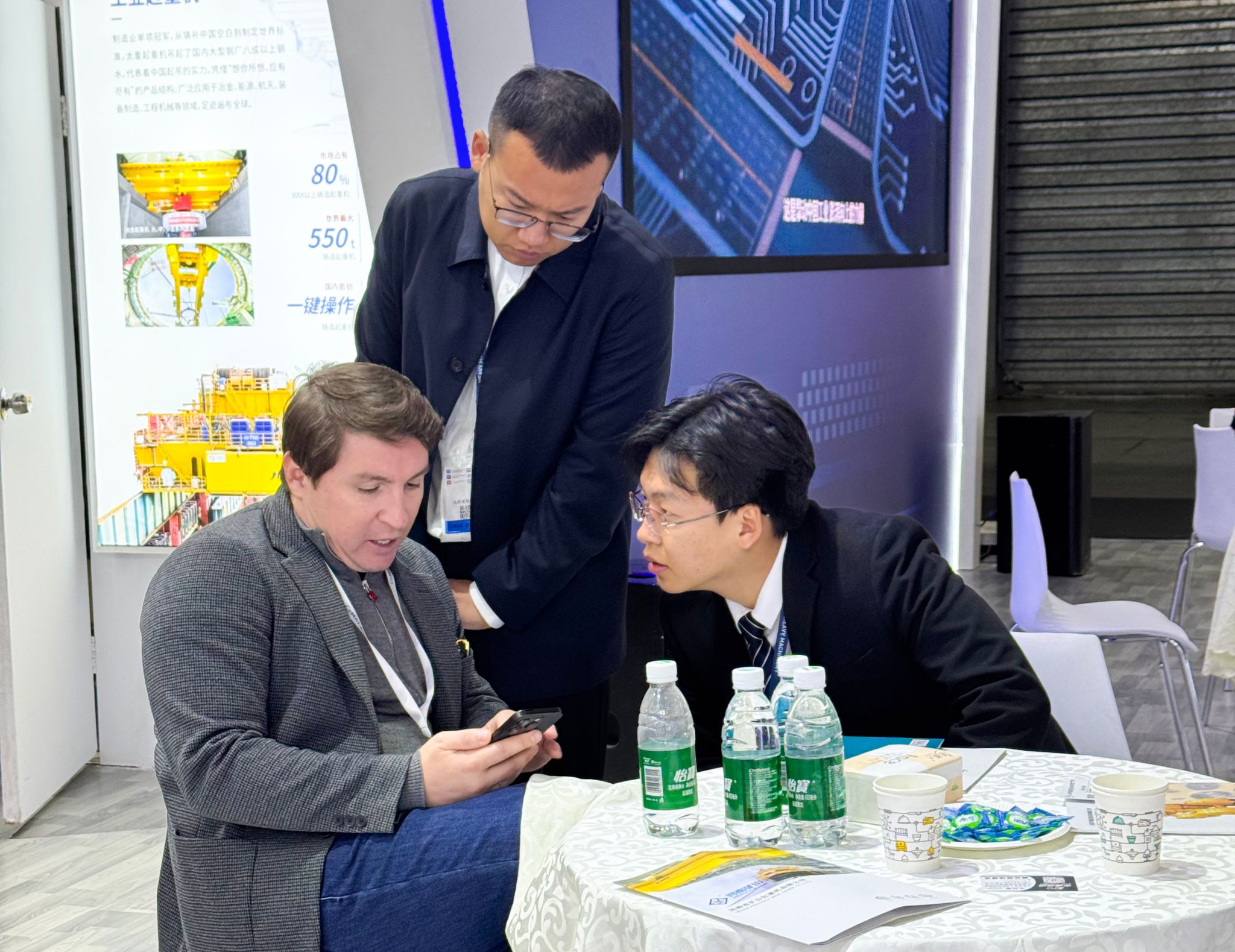 集團公司領(lǐng)導(dǎo)吳建華、史智杰及相關(guān)單位負(fù)責(zé)人共同參觀了太重展區(qū)。