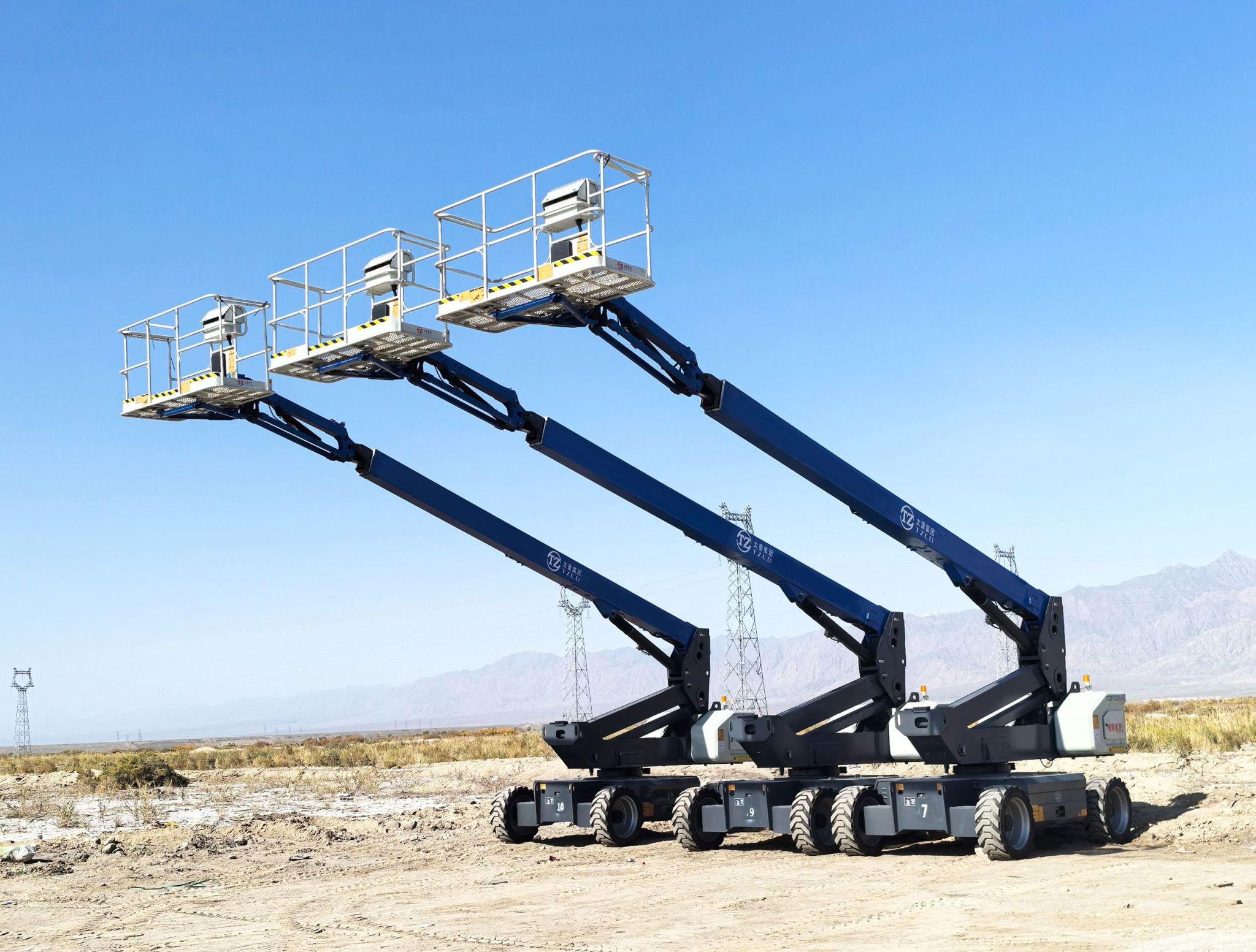 天山腳下展風(fēng)采,大漠之畔顯身手。近日,在新疆某乙烯項(xiàng)目建設(shè)現(xiàn)場(chǎng),12臺(tái)太重直臂式高空作業(yè)平臺(tái)高舉臂膀,托起助力產(chǎn)業(yè)興疆的光榮使命。勻稱美觀的機(jī)身與藍(lán)天白云相互輝映,演繹出一首高效精準(zhǔn)的工程建設(shè)奏鳴曲。