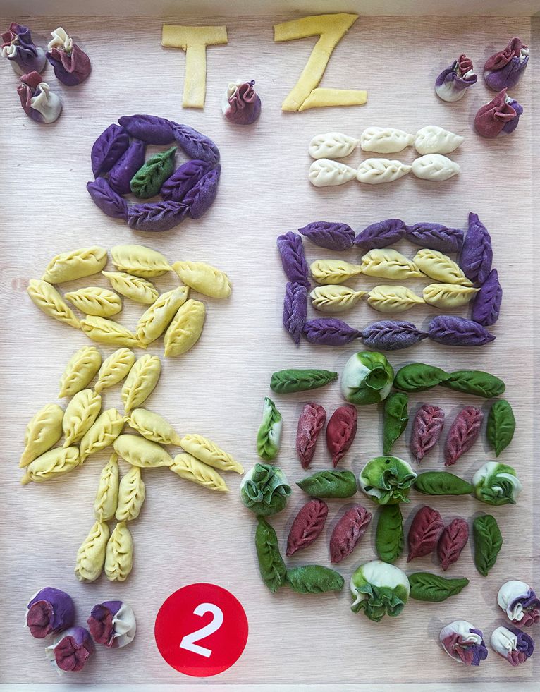 比賽現場,職工們擼起袖子,干勁十足。他們搟皮拌餡,左手拱起餃子皮,右手用筷子夾起餡料往里一放,十指翻飛間,一個餃子已躍然眼前。大家各顯神通,用富有創(chuàng)意的拼色、造型將餃子裝扮得五彩斑斕,呈現出各式各樣的可愛模樣,整個賽場暖意融融、歡聲笑語。