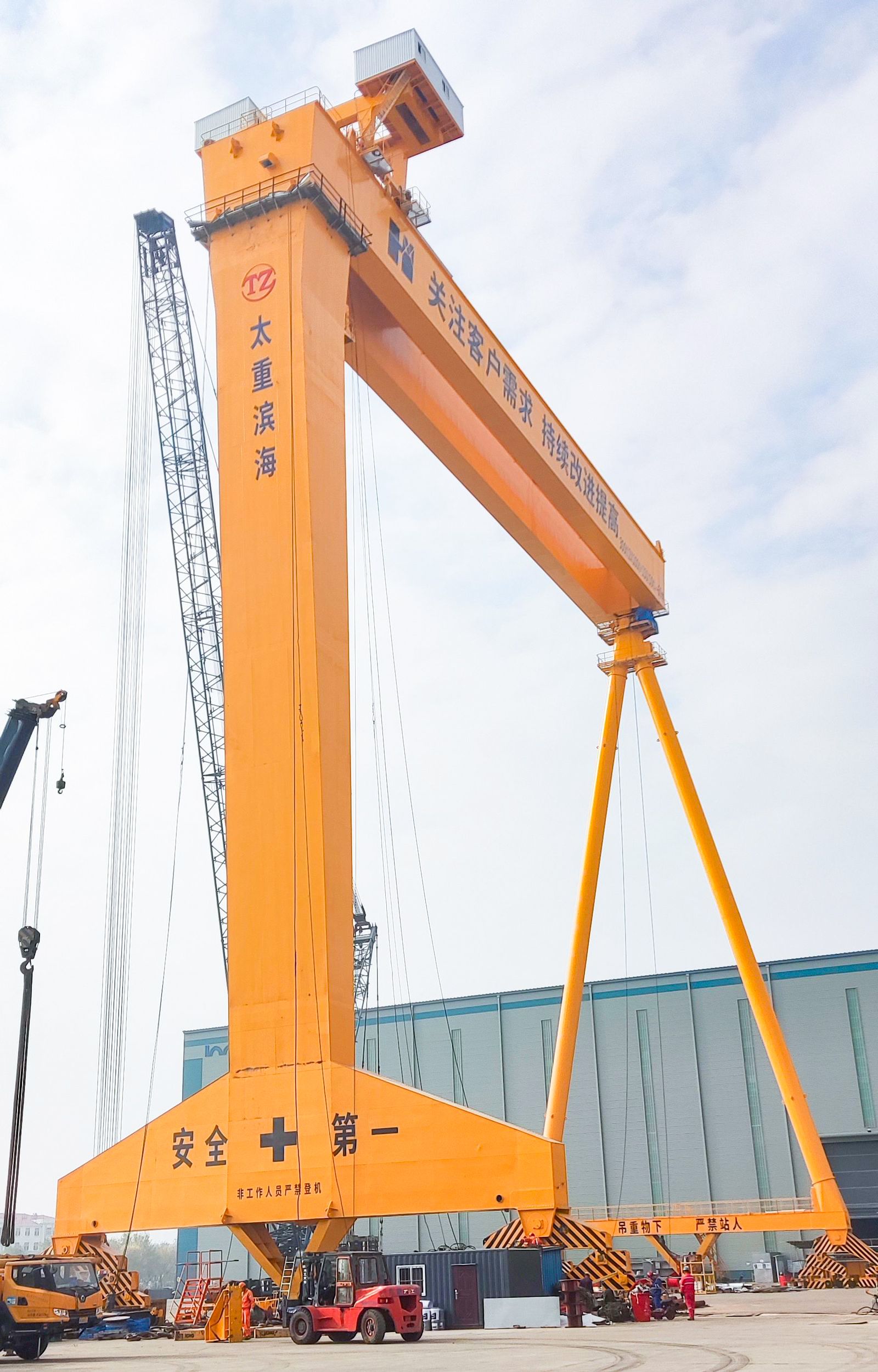 身披太重logo的造船門式起重機(jī)