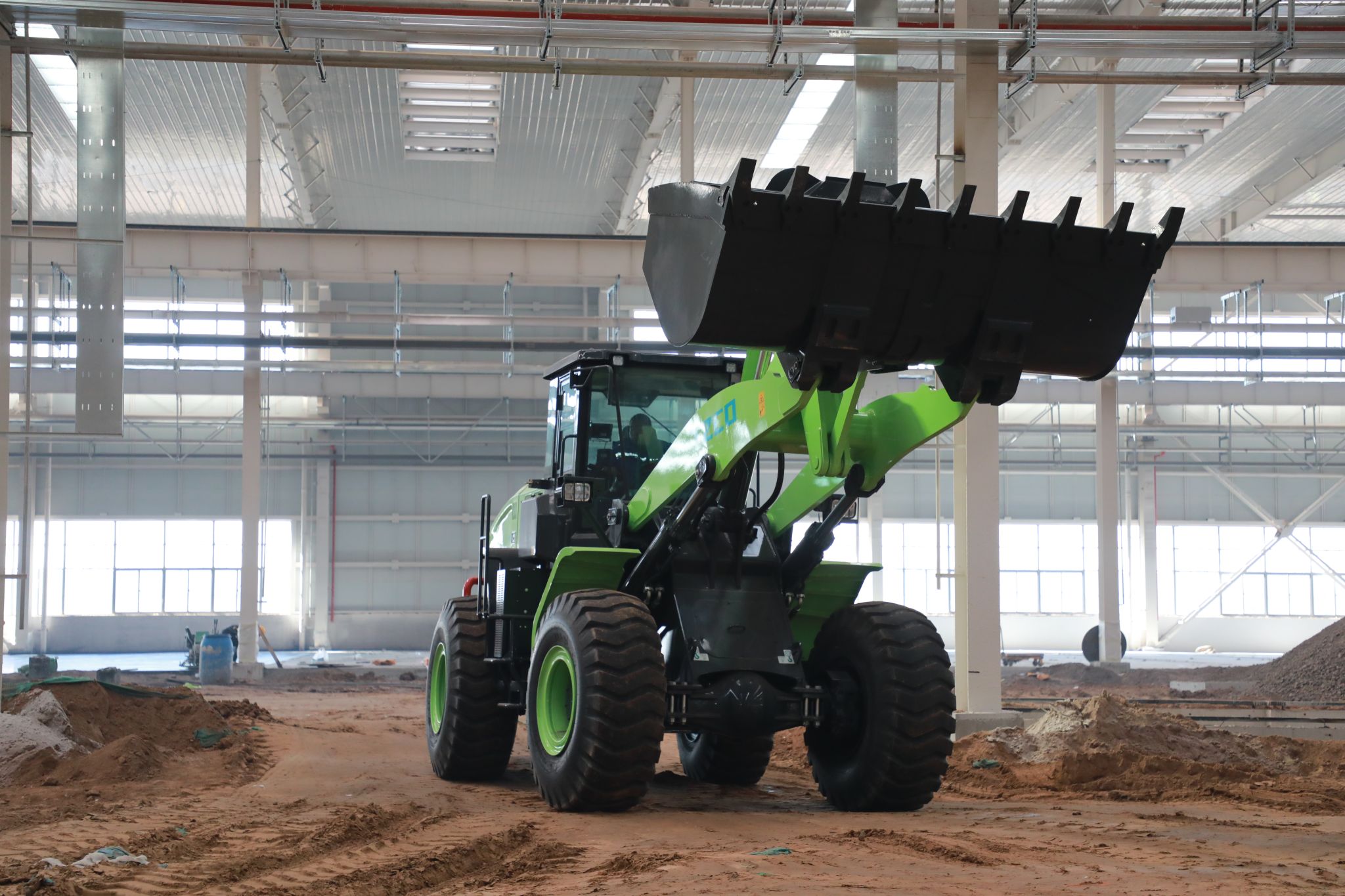 走進(jìn)項(xiàng)目一標(biāo)段焊接加工廠房,太重制造的TZ960Ev裝載機(jī)高舉鏟斗,威風(fēng)前行。它搭載著公司自主研發(fā)的電控系統(tǒng),動(dòng)力傳輸精準(zhǔn)高效,操作靈敏流暢。超強(qiáng)車架在重載下紋絲不動(dòng),智能液壓系統(tǒng)讓每一次掘進(jìn)都舉重若輕。此刻,這臺(tái)綠色巨獸正以零排放優(yōu)勢(shì),在項(xiàng)目建設(shè)現(xiàn)場(chǎng)釋放能量。