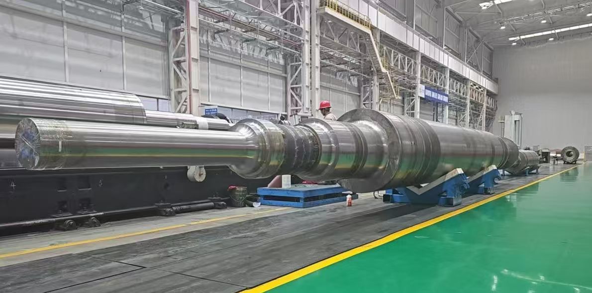 這類轉(zhuǎn)子屬于細長軸類鍛件,截面變化大,長徑比超過12,在熱處理中極易出現(xiàn)變形。為解決這一行業(yè)公認難題,設(shè)備團隊對熱處理設(shè)備進行“量身改造”,突破設(shè)備極限長度,確保超長轉(zhuǎn)子在熱處理過程中受熱均勻、變形可控;技術(shù)團隊則如同“工藝雕塑家”,在以往經(jīng)驗的基礎(chǔ)上,系統(tǒng)梳理出一套專為發(fā)電機轉(zhuǎn)子定制的制造工藝體系,精準攻克了材料均勻性、熱處理變形控制、磁性達標、精度保持等一系列難關(guān),尤其是在無損檢測環(huán)節(jié),實現(xiàn)了“火眼金睛”般的精準探傷,為產(chǎn)品的可靠性筑起最后一道堅實防線。最終,在團隊的緊密協(xié)作下,首支轉(zhuǎn)子試制成功,各項性能指標均滿足設(shè)計要求。