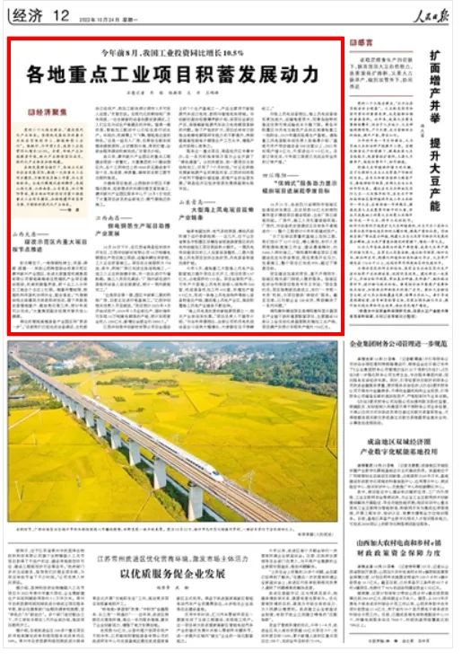 今日,人民日報在重要版面《各地重點工業(yè)項目積蓄發(fā)展動力》報道中,重點關注太重新園區(qū)設備安裝及建設進展情況,給集團公司廣大干部職工和新園區(qū)的建設者們帶來了極大地鼓舞。