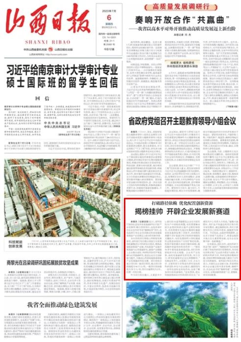 今天,山西日報頭版刊發(fā)《揭榜掛帥 開辟企業(yè)發(fā)展新賽道》文章,聚焦太重結合技術需求,通過“揭榜掛帥”項目,與高校、科研院所科研方向、科研成果精準對接,堅持以科技創(chuàng)新賦能高質量發(fā)展,不斷完善技術研發(fā)體系,力爭在山西省轉型發(fā)展中更好發(fā)揮龍頭帶動作用。