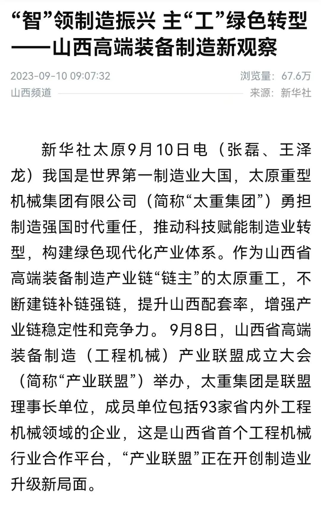 高端裝備制造產(chǎn)業(yè)鏈作為山西省培育打造的重點十條產(chǎn)業(yè)鏈之一。太重集團將以產(chǎn)業(yè)聯(lián)盟為契機,充分發(fā)揮“鏈主”企業(yè)的龍頭帶動作用,為山西省建設(shè)中部地區(qū)先進制造業(yè)基地做出積極貢獻。