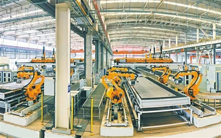 距離老廠(chǎng)區(qū)50公里外,山西轉(zhuǎn)型綜改示范區(qū)瀟河產(chǎn)業(yè)園區(qū)內(nèi),太重智能高端裝備產(chǎn)業(yè)園已拔地而起。在這里,太重所有裝備制造都能實(shí)現(xiàn)以工序?yàn)閱挝坏倪B續(xù)生產(chǎn)。各種機(jī)器人設(shè)備夜以繼日“上班”,智能導(dǎo)引搬運(yùn)車(chē)來(lái)回穿梭、自動(dòng)取送貨,一張鋼板經(jīng)過(guò)全流程生產(chǎn)線(xiàn)后,即可最大程度地切割出各類(lèi)高質(zhì)量零部件,智能產(chǎn)線(xiàn)上“只見(jiàn)物,不見(jiàn)人”。