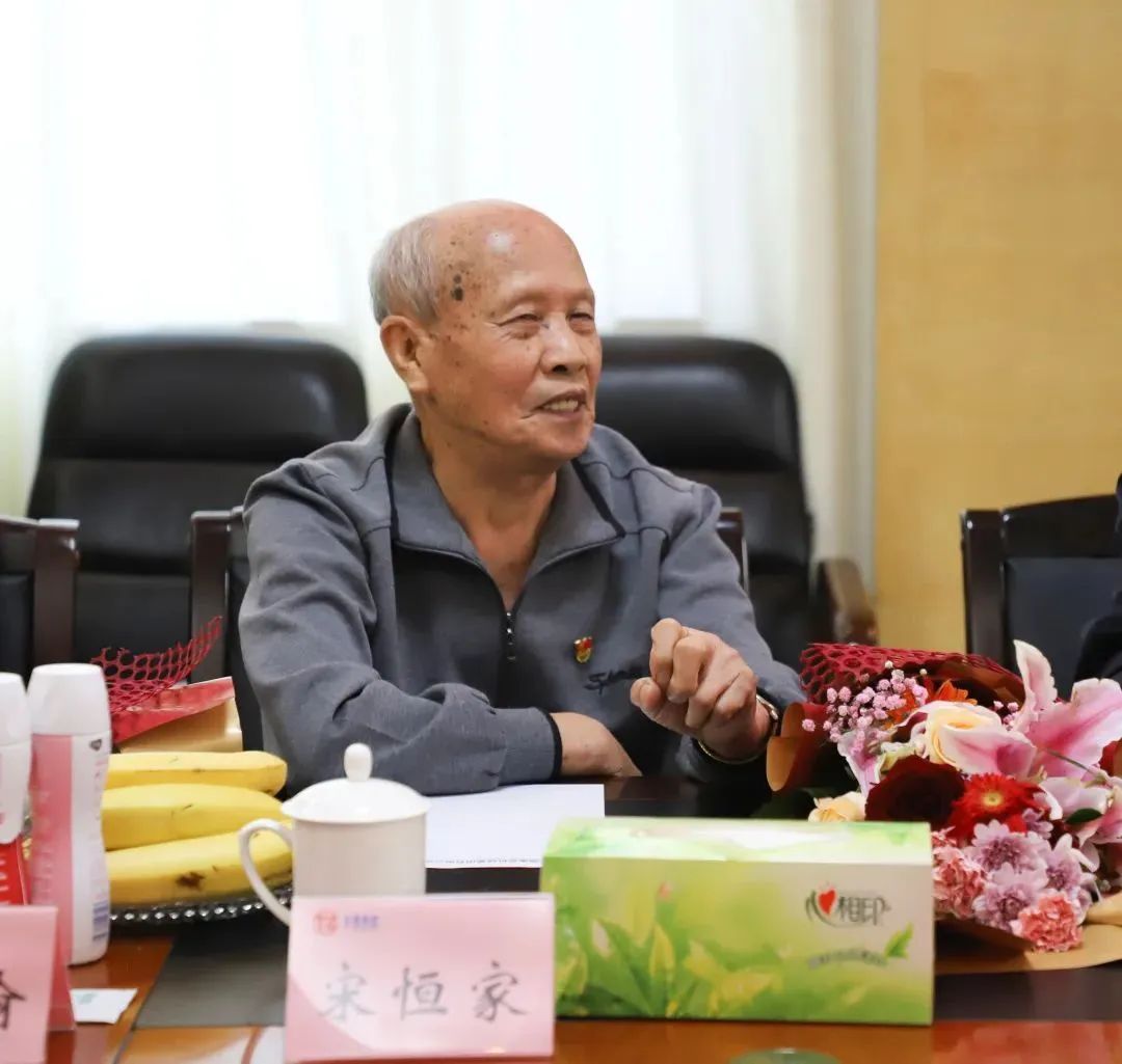 “再見到宋老,倍感親切,讓我回憶起剛進(jìn)廠的時候。”原來,在朱少輝剛進(jìn)入太重的時候,就曾和宋恒家前輩共同在技術(shù)中心起重所工作?!笆撬卫辖虝宋遥绾螌⒆约旱睦碚撨\(yùn)用于實(shí)際設(shè)計(jì),也是宋老言傳身教,讓我具備一名設(shè)計(jì)員該有的素質(zhì)。縝密的分析,對技術(shù)、結(jié)構(gòu)的不斷追求,以及在設(shè)計(jì)過程中捕捉、發(fā)現(xiàn)、簡化、總結(jié)、借鑒,這些伴隨著我的設(shè)計(jì)生涯,讓我受益終身?!毙膽迅屑さ闹焐佥x在得知宋恒家前輩會參加此次座談會時,主動要給宋老獻(xiàn)花。