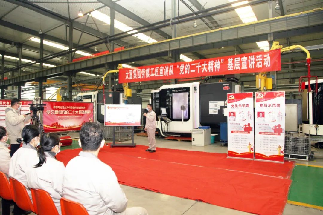 在太重榆液液壓泵分廠車間現(xiàn)場,伴隨著機(jī)器的轟鳴聲,黨的二十大精神宣講活動(dòng)也正在火熱進(jìn)行中。集團(tuán)公司“勞模工匠”宣講隊(duì)成員,山西省勞動(dòng)模范、省級勞模創(chuàng)新工作室?guī)ь^人常永紅,正在為他的工友們宣講黨的二十大精神。生產(chǎn)車間既是他每天工作戰(zhàn)斗的地方,也是他宣講黨的創(chuàng)新理論的陣地。他結(jié)合崗位實(shí)際談心得、說體會(huì)、講感受,推動(dòng)黨的二十大精神走進(jìn)基層一線、走進(jìn)職工心里,唱響新時(shí)代奮斗者之歌。