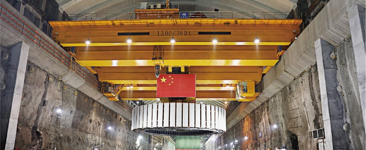 2021年6月28日,太重集團(tuán)生產(chǎn)制造的1300噸橋式起重機(jī),順利完成了三峽白鶴灘水電站全球首臺(tái)百萬千瓦水電機(jī)組吊裝任務(wù)。